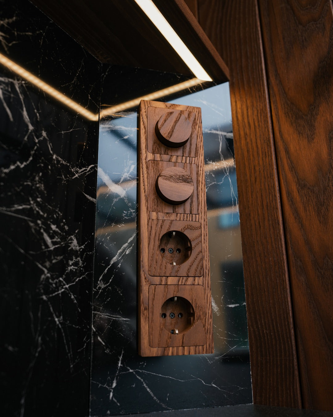 Iga lüliti ja pistik on valmistatud ehtsast naturaalsest puidust, tuues interjööri soojust ja naturaalsust, mida ükski tehislik materjal ei suuda asendada.